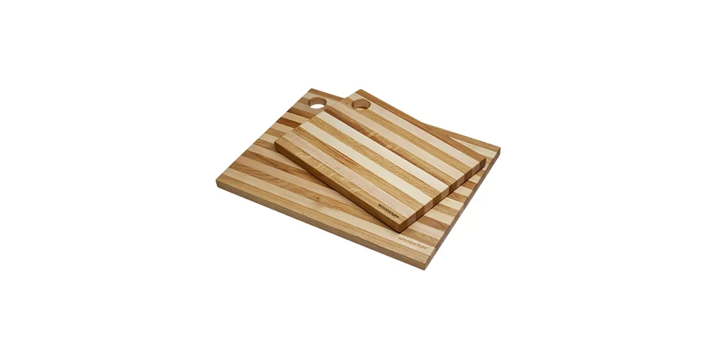 Масивна обробна дошка з наскрізним отвором для зручності розміщення на стіні або гачку. Грайливі смужки з різних порід дерева додають перцевих горошин в стриманий дизайн дошки. Модель Stripes підходить для нарізки і нарізки виробів, а також для подачі м’ясних страв.